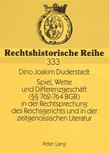 Spiel, Wette und Differenzgeschäft (§§ 762-764 BGB) in der Rechtsprechung des Reichsgerichts und in der zeitgenössischen Literatur (Rechtshistorische Reihe) PDF Free CLICK HERE TO download ebook Spiel, Wette und Differenzgeschäft (§§ 762-764 BGB) in der Rechtsprechung des Reichsgerichts und in der zeitgenössischen Literatur (Rechtshistorische Reihe) by ... pdf ePub mobi kindle...